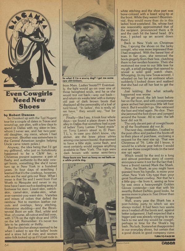 As Ralph J. Gleason once said, “music is the glue that holds civilizations together.” CREEM is the publication that holds my perspective together. Without it, I should probably take all these horribly decadent fads and fashions ultra-seriously. But CREEM is the embodiment of self-parody, which I love, and that combined with some very creative (if occasionally uncohesive) writing it makes my favorite magazine.