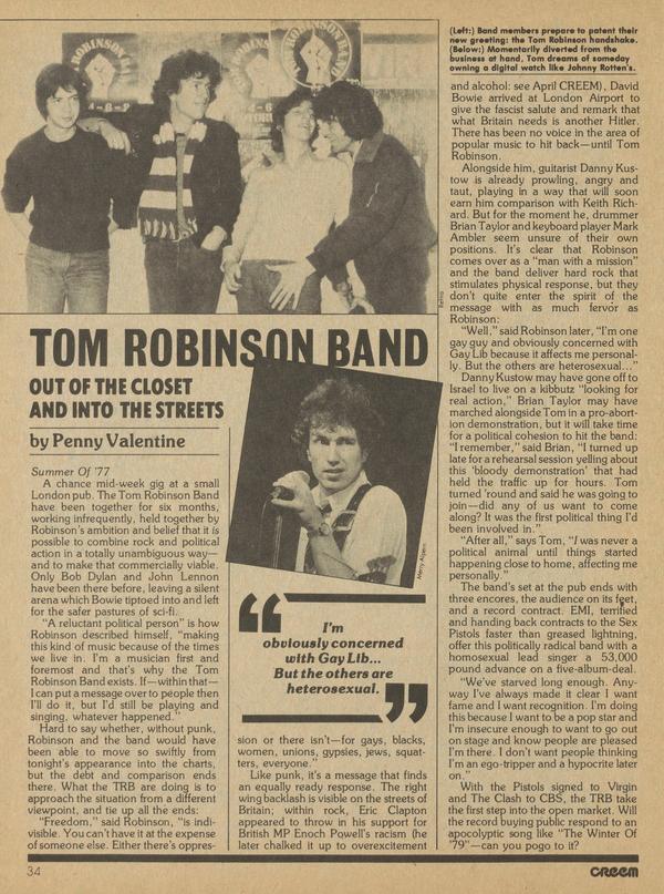 A chance mid-week gig at a small London pub. The Tom Robinson Band have been together for six months, working infrequently, held together by Robinson's ambition and belief that it is possible to combine rock and political action in a totally unambiguous way— and to make that commercially viable.