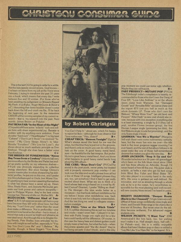 This is the last CG I’m going to write for a while. Not the last capsule record review, God knows— I’ve been on leave from my job at the Voice since February I trying to transform the past 10 years into a book, which means that every day I write between five and 10 entries.