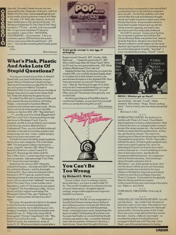 CINCINNATI—Like all other geriatric CREEMsters, I waltzed into this biz believing to the death in the ca.-1971 BangsMarsh party line that postulated Dee-troit Rock ’n’ Roll as nearer my God than the outlanders could ever be. Forget that I never got around to seeing the mythical MC5 or the surreal Stooges on stage—Lestronic Bangs gave me the word on both groups’ immortality when I was still a cub crit, and I’ve always been more than ready to embrace any spark that flew off the smouldering remains of those two ultragroups.