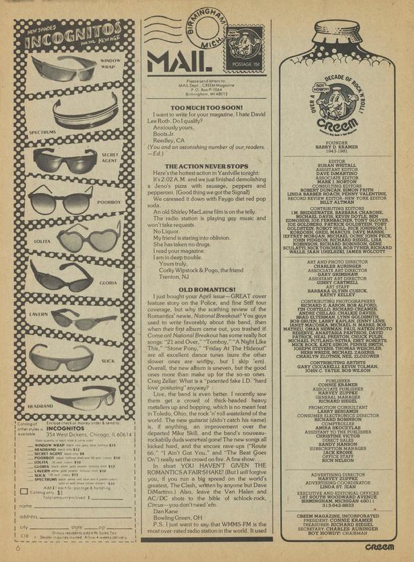I just bought your April issue—GREAT cover feature story on the Police, and fine Stiff tour coverage, but why the scathing review of the Romantics' newie, National Breakout? You guys used to write favorably about this band, then when their first album came out, you trashed it!