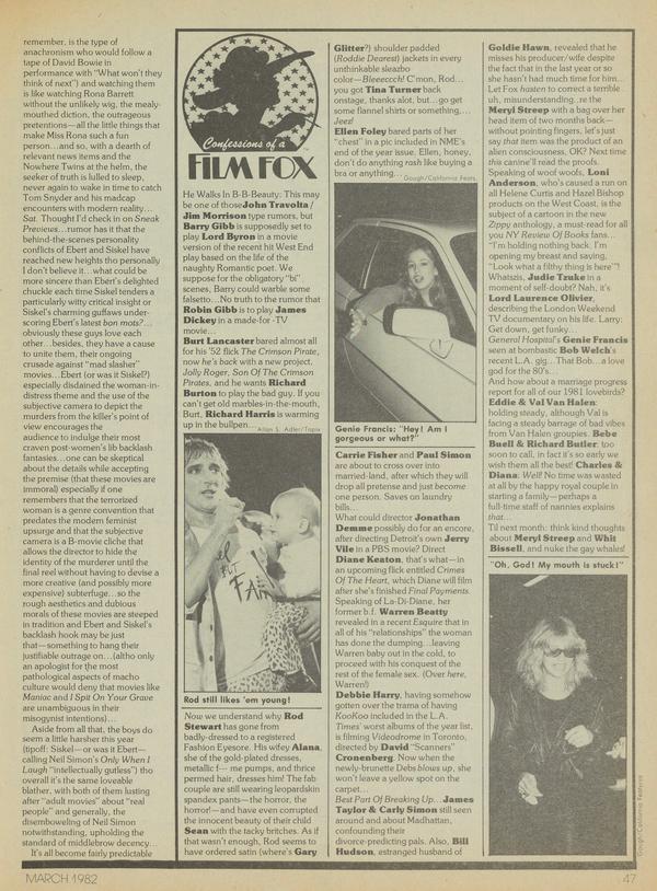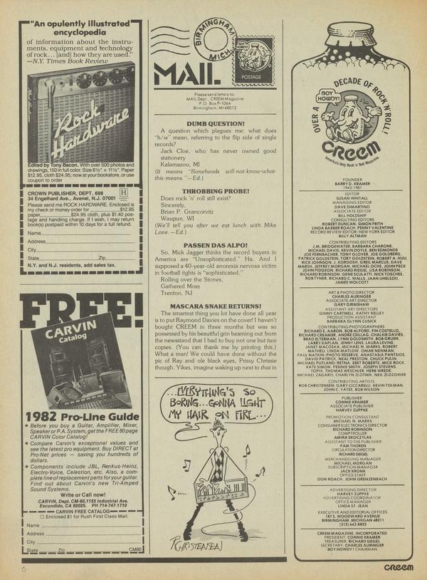A question which plagues me: what doesb/w mean, referring to the flip side of single records? Jack Cloe, who has never owned good stationery Kalamazoo, MI (It meansBoneheads will-not-know-whatthis-means.—Ed.) THROBBING PROBE!