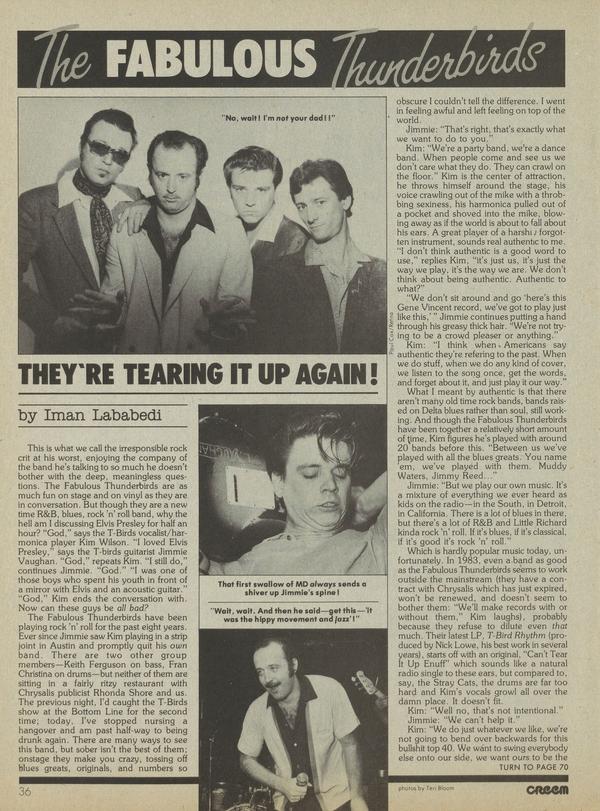 This is what we call the irresponsible rock crit at his worst, enjoying the company of the band he’s talking to so much he doesn’t bother with the deep, meaningless questions. The Fabulous Thunderbirds are as much fun on stage and on vinyl as they are in conversation.