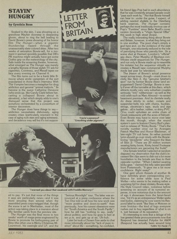 Soaked to the skin, I was shivering on a grandiose Mayfair doorstep in deepening gloom, about to ring the bell leading to David Bowie’s press showing of his horror film The Hunger—when a gigantic thunderclap ripped through the unseasonably slate-colored skies.