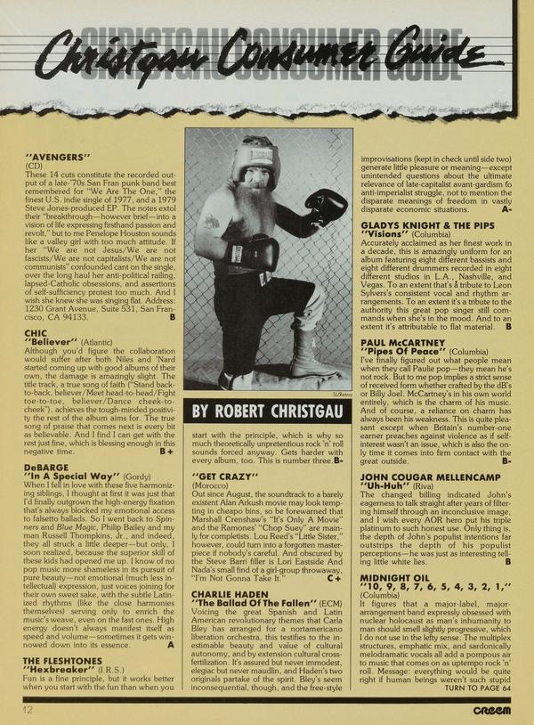 "AVENGERS" (CD) These 14 cuts constitute the recorded output of a late-’70s San Fran punk band best remembered for “We Are The One,” the finest U.S. indie single of 1977, and a 1979 Steve Jones-produced EP. The notes extol their “breakthrough—however brief—into a vision of life expressing firsthand passion and revolt,” but to me Penelope Houston sounds like a valley girl with too much attitude.