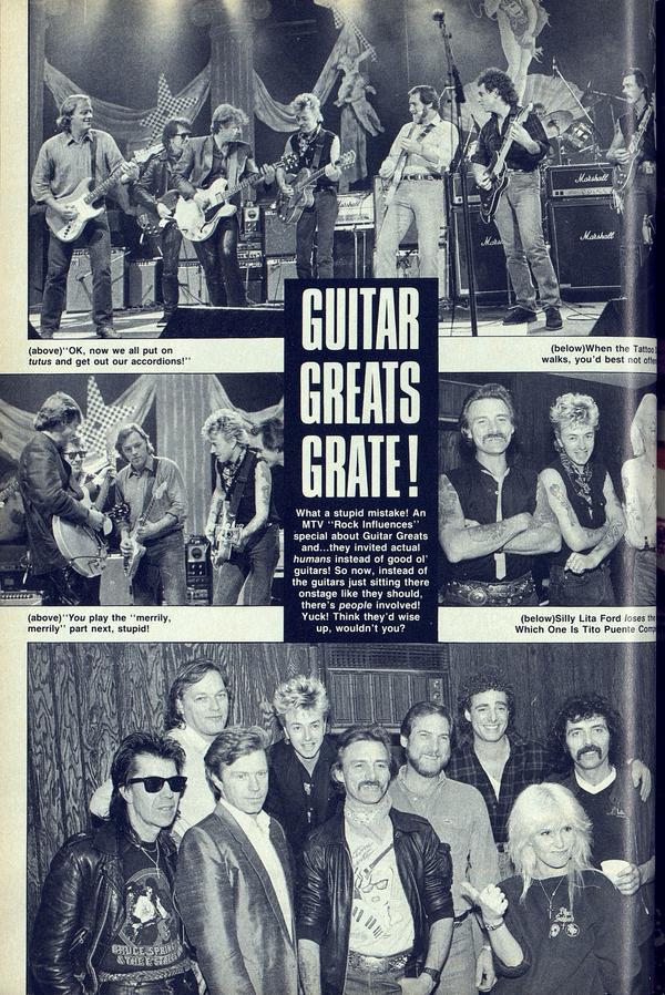 What a stupid mistake! An MTV “Rock Influences" special about Guitar Greats and...they invited actual humans instead of good ol’ guitars! So now, instead of the guitars just sitting there onstage like they should, there’s people involved!