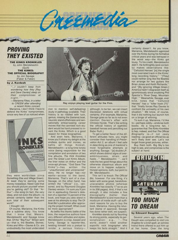 "...I couldn’t keep from wondering how they [Ray and Dave Davies] sleep on their compromises at night." —Marianna Fikes, in a letter to CREEM after attending a recent Kinks concert. Marianna, I don’t think I have to defend the Kinks’ kompromises, since very few of us noticed when they were world-class (circa Something Else and Village Green).
