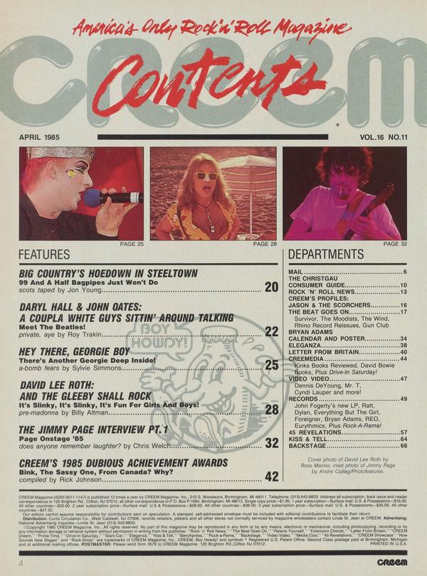 CREEM'S 1985 DUBIOUS ACHIEVEMENT AWARDS