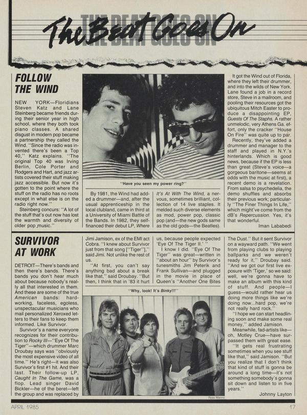FOLLOW THE WIND NEW YORK—Floridians Steven Katz and Lane Steinberg became friends during their senior year in high school, where they both took piano classes. A shared disgust in modern pop became a partnership they called the Wind. “Since the radio was invented there’s been a Top 40,” Katz explains.