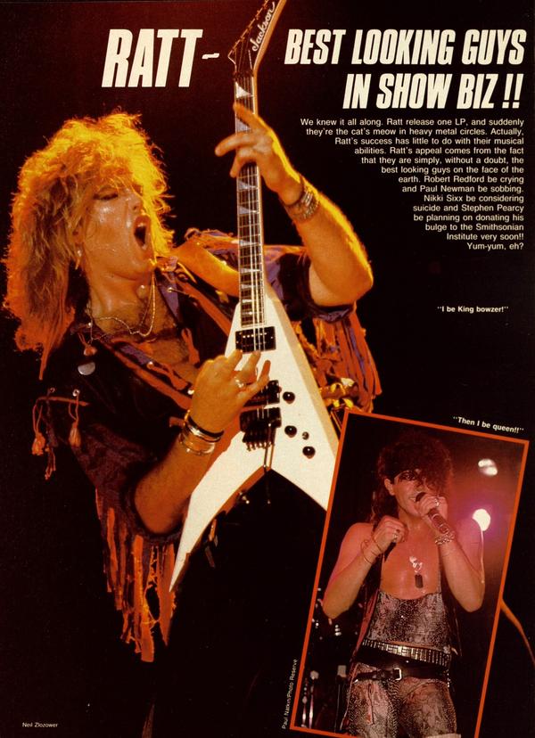 We knew it all along. Ratt release one LP, and suddenly they’re the cat’s meow in heavy metal circles. Actually, Ratt’s success has little to do with their musical abilities. Ratt’s appeal comes from the fact that they are simply, without a doubt, the best looking guys on the face of the earth.