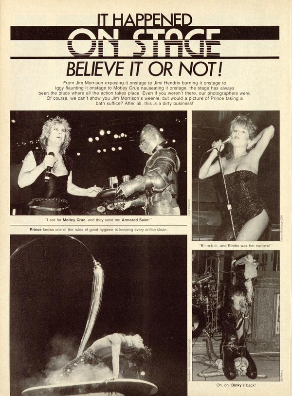 When in the course of human events it becomes necessary for performers of rock 'n' roll, R&B or S&M to resort to cheap theatrics, to expoit our precious human bodies for the sake of their own personal gain—indeed, to defile all that is right with this wondrous gift of life— you can bet your bottom dollar that ROCK-SHOTS wants to get in on the action!