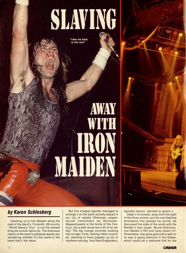 Catching up to Iron Maiden along the road of the band’s 13-month, 28-country “World Slavery Tour” is not the easiest thing we’ve ever had to do. The strenuous nature of the band’s schedule leaves you wondering whether it’s the world or the band that’s the slave.