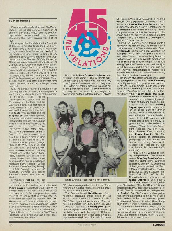 Welcome to Garageland Around The World. Cults across the globe are worshipping at the shrine of the fuzztone god, and the seeds of psychedelia have resprouted in bands greedily plundering the trashy treasure troves of the ’60s. I grew up on the Standells and the Syndicate Of Sound, so I’m glad to see the sound revived. But I have a few reservations.