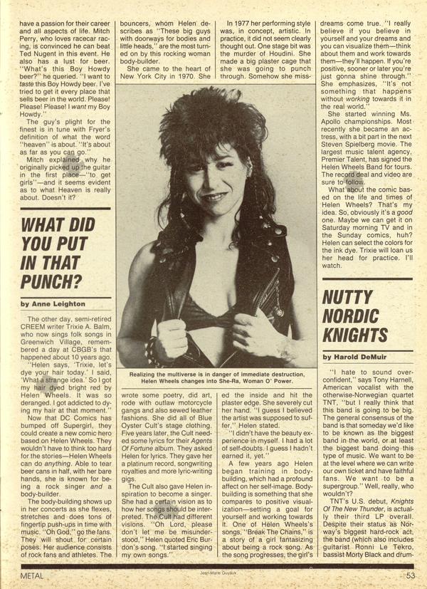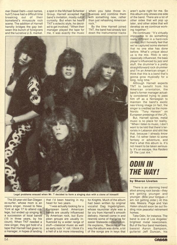 “I hate to sound over-confident,” says Tony Harnell, American vocalist with the otherwise-Norwegian quartet TNT, “but I really think that this band is going to be big. The general consensus of the band is that someday we’d like to be known as the biggest band in the world, or at least the biggest band doing this type of music.