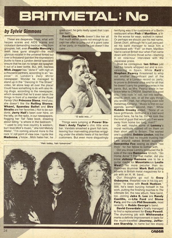 These are desperate times, what with herpes scares and AIDS scares and rockstars demanding medical notes from groupies; hell, even Freddie Mercury’s teeth have gone straight!—the most glorious vocalist in the universe forked out over a thousand (pardon the expression) bucks to have a London dental specialist ensure that he can no longer eat spaghetti out of a beer bottle.