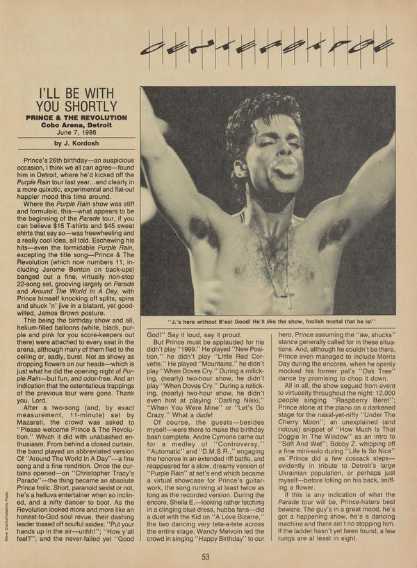 Prince’s 26th birthday—an auspicious occasion, I think we all can agree—found him in Detroit, where he’d kicked off the Purple Rain tour last year...and clearly in a more quixotic, experimental and flat-out happier mood this time around.