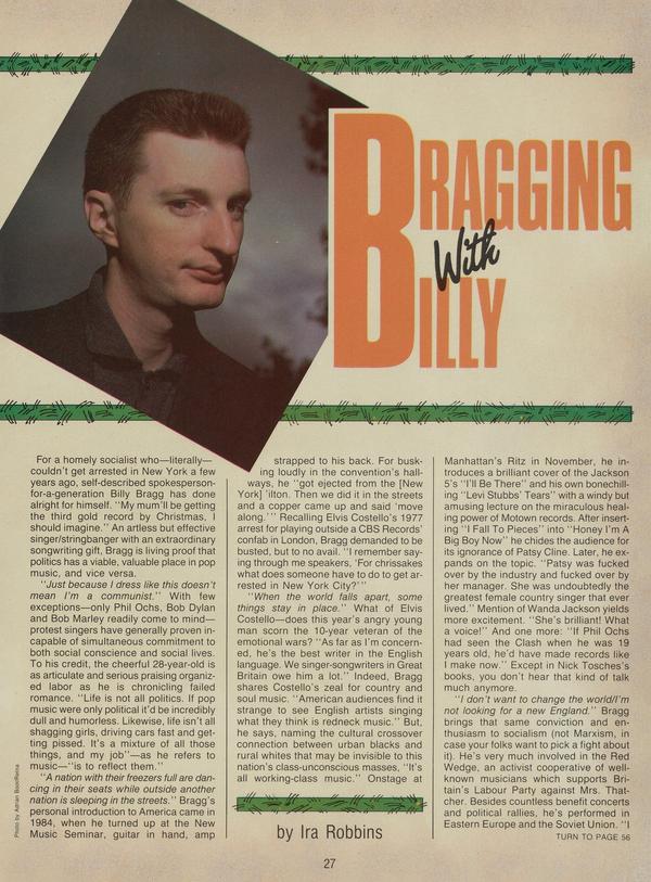For a homely socialist who—literally— couldn’t get arrested in New York a few years ago, self-described spokesperson-for-a-generation Billy Bragg has done alright for himself. “My mum’ll be getting the third gold record by Christmas, I should imagine.”