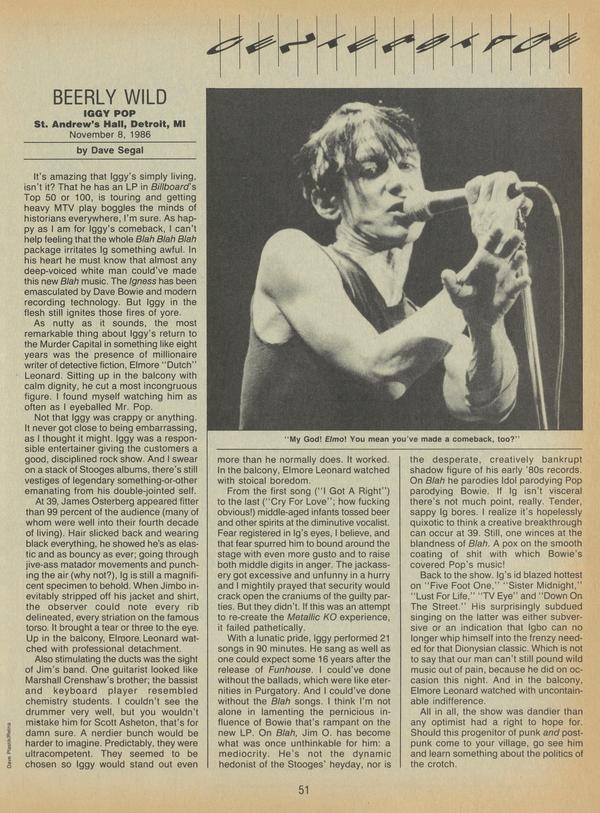 IGGY POP St. Andrew's Hall, Detroit, MI November 8, 1986