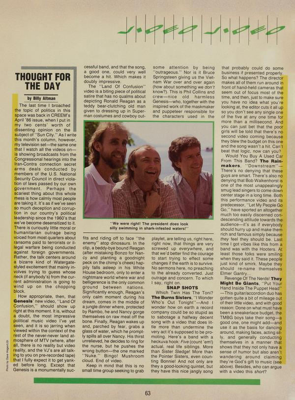 The last time I broached the topic of politics in this space was back in CREEM's April 86 issue, when I put in my two cents worth of dissenting opinion on the subject of Sun City.
