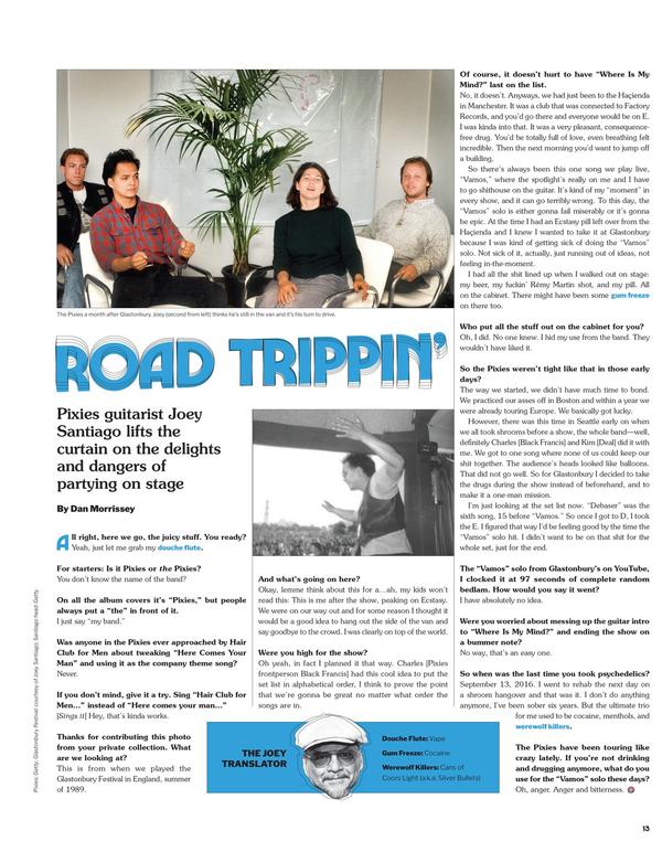 Pixies guitarist Joey Santiago lifts the curtain on the delights and dangers of partying on stage.